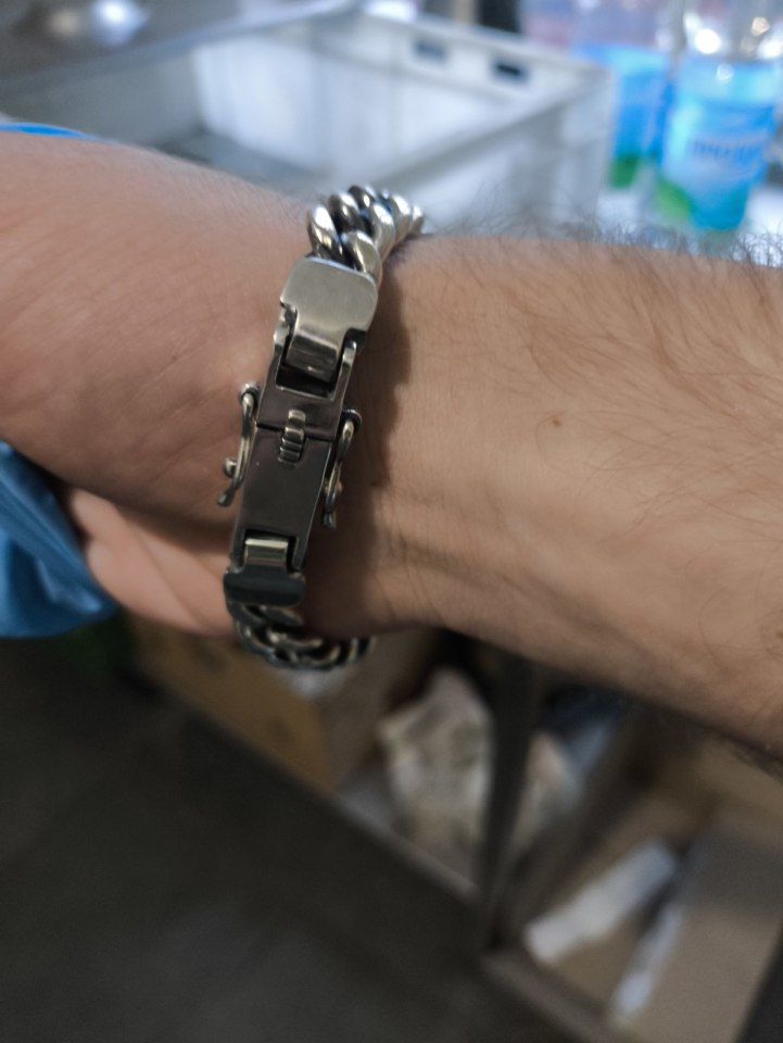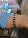 Full-fledged silver bracelet on hand.