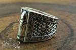 Men's signet ring of sterling silver with blackening and a decorative bullet