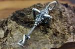 The blackened finish highlights the recesses, enhancing contrast and legibility of the details. The eyelet has a simple design, ensuring a secure chain attachment.