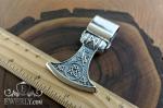 Pendant "Perun's Axe" made of 925 silver with runes and Slavic symbols of power