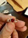 Набор из серебряных серёжек и кольца с сердцем (камень зелёного цвета)