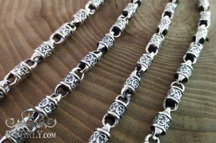 На просторах интернета можно встретить множество названий и видов плетений серебряных цепочек и браслетов. Практически из всех видов цепочных плетений можно изготовить как чисто мужские цепи и браслеты, так и чисто женские, зачастую всё зависит только от размеров и массы. Поэтому для нас уже давно исчезло разделение на мужские плетения и женские, осталась только формальность, ведь одно и то же изделие может отлично подходить и мужчинам, и женщинам одновременно. Ярким примером таких изделий являются серебряные цепочки из плетения «Бисмарк» массой около 15-25 грамм, а также «Якорные цепи» не превышающие 25 грамм. Более того «Бисмарк» и «Якорное» - это одни из немногих видов плетений, чьи названия однозначно воспринимаются почти всеми и везде, кто хоть как-то связан или имел дело с ювелирными украшениями.