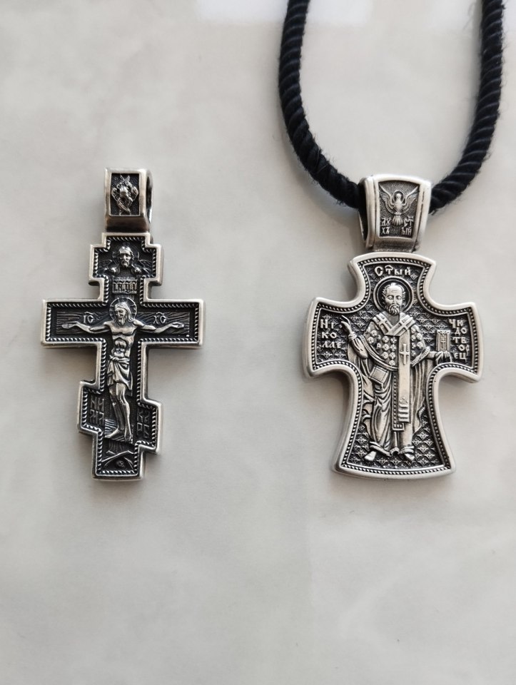 Изображено на фото: Распятие Христово. Святитель Николай Чудотворец.Длина: 3.2 см