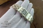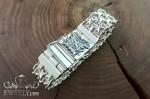 Массивный мужской браслет из серебра 925 пробы выполнен в сложном плетении «Двойной Фараон с пластинами». Вес 90 г и ширина 20 мм формируют мощный визуальный акцент и подчеркивают статус владельца. Длину, а также другие параметры браслета можем изменить под Ваши индивидуальные запросы.